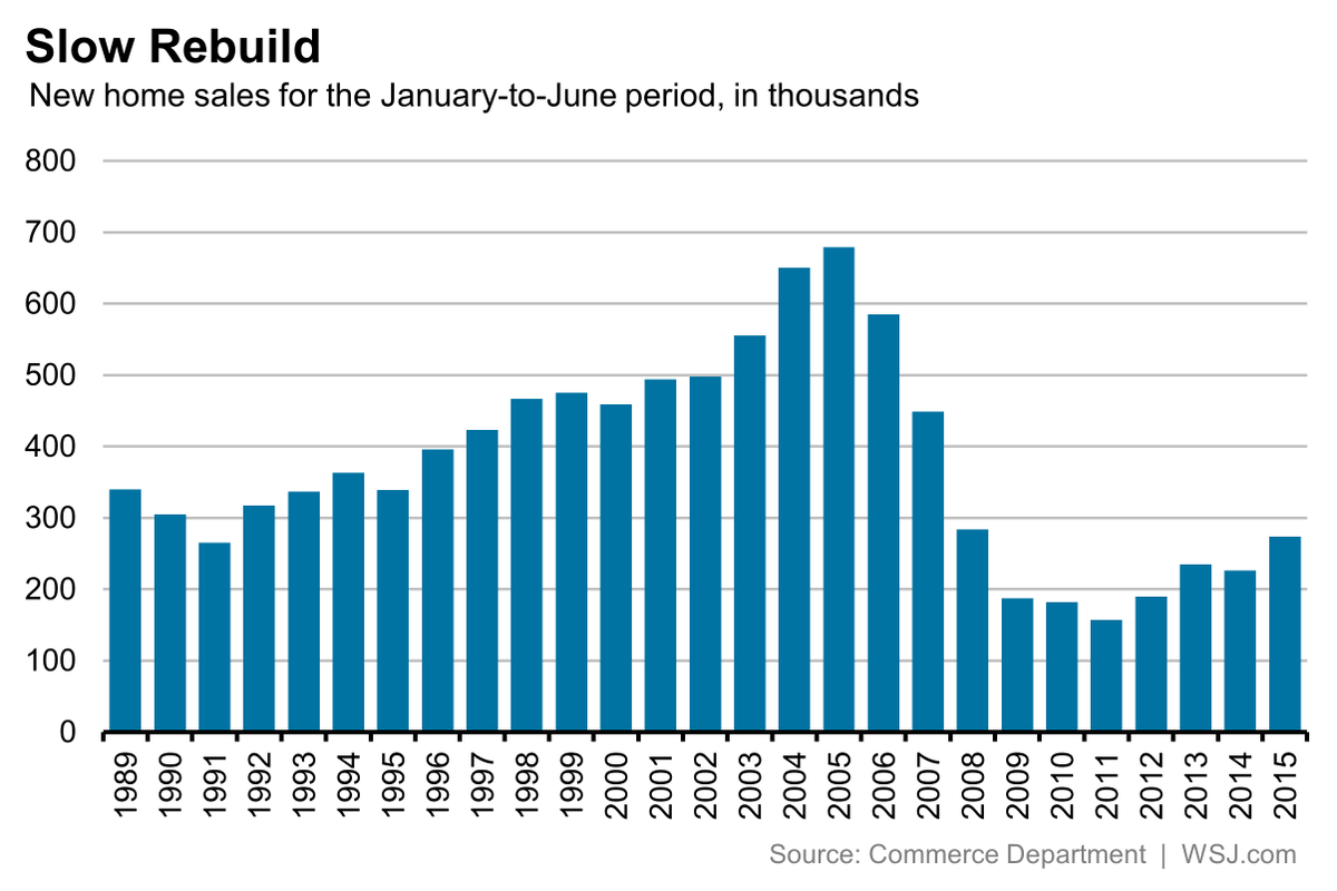 •Room for Improvement – Even with 2015’s impressive growth, new home sales still have considerable room to grow. As the Wall Street Journal documented, 2015’s rate of sales is still below where new home sales were in 1989.