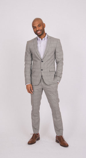 Suit by Zara; Shirt by Uniqlo; socks by Cole Haan; shoes by Cole Haan