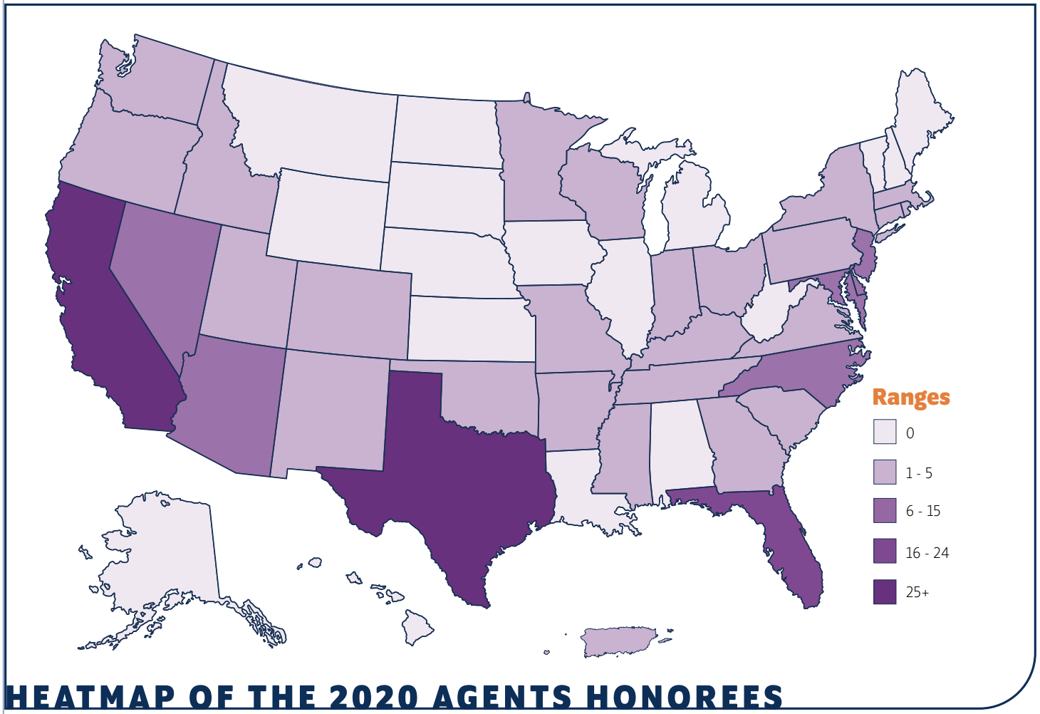 RE/MAX was the most highly represented brand in the list for the sixth year running. A total of 42 RE/MAX agents made the 2019 list, followed by 32 from Century 21 and 28 from Keller Williams Realty. Realogy had 77 agents make the list this year across all of its brands.