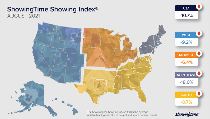 Regionally, the South saw the smallest drop in residential showings with a 0.7% decline, followed by the Midwest with a 6.4% dip in activity.