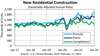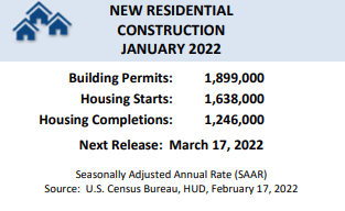 Single-family housing starts fell 5.6% from December’s revised estimate to 1,116,000, while multifamily starts slid 2.1% to 510,000.