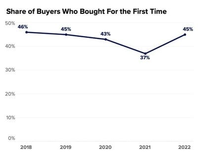 “First-time buyers now appear to be making relative gains as high mortgage interest rates disproportionately encourage current homeowners to stay put,” Zillow Population Scientist Manny Garcia said in the report. The slowed flow of homes onto the market seems to confirm this. And though rising mortgage rates affect all buyers, Garcia said, first-time buyers are likely less deterred since rents are also so high.