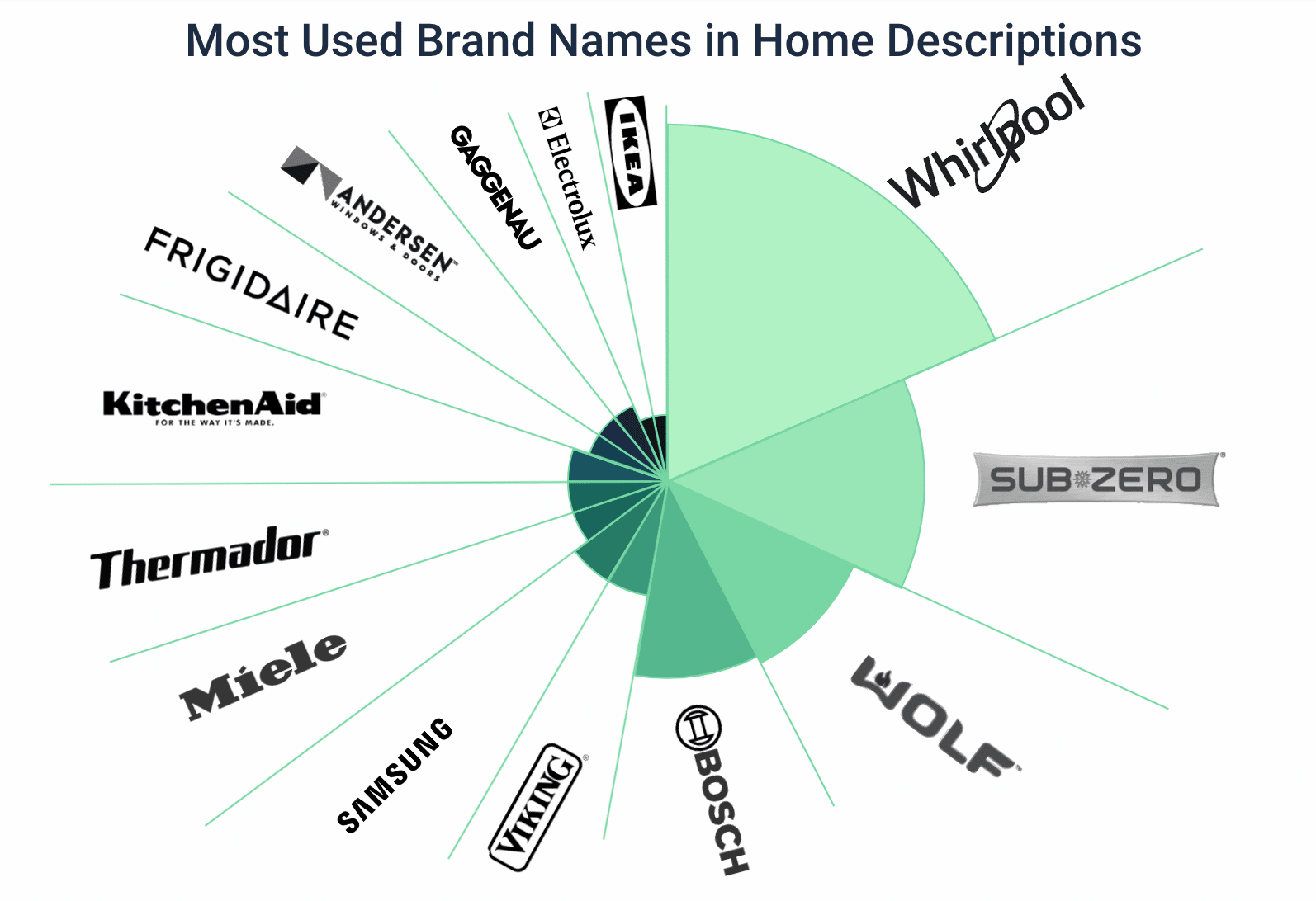 Yard2 also provided a glimpse of which product brands made it into most descriptions, with Whirlpool leading the pack.