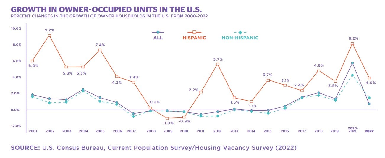 While the Hispanic homeownership rate is still significantly lower than non-Hispanic homeownership — 48.6% compared to 74.4% — trends like multigenerational homebuying, co-borrowing and mortgage readiness led to year-over-year increases in Hispanic homeownership in 2022, according to new data from the National Association of Hispanic Real Estate Professionals (NAHREP).