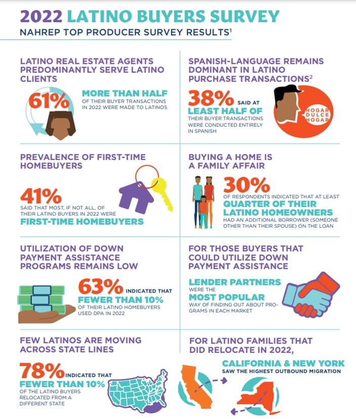 Additionally, NAHREP found that Latinos are still among the most likely to live in multigenerational households, with many young buyers purchasing homes to live in with their relatives. Seven out of 25 professionals surveyed in NAHREP’s Top Real Estate Practitioner Study noted an increase in multigenerational buying in 2022, while 19 out of 25 saw an increase in co-borrowing with family. The growing trend appears outside the Latino population, too, with the U.S. Census Bureau reporting that multigenerational households have increased by 800,000 since 2017.