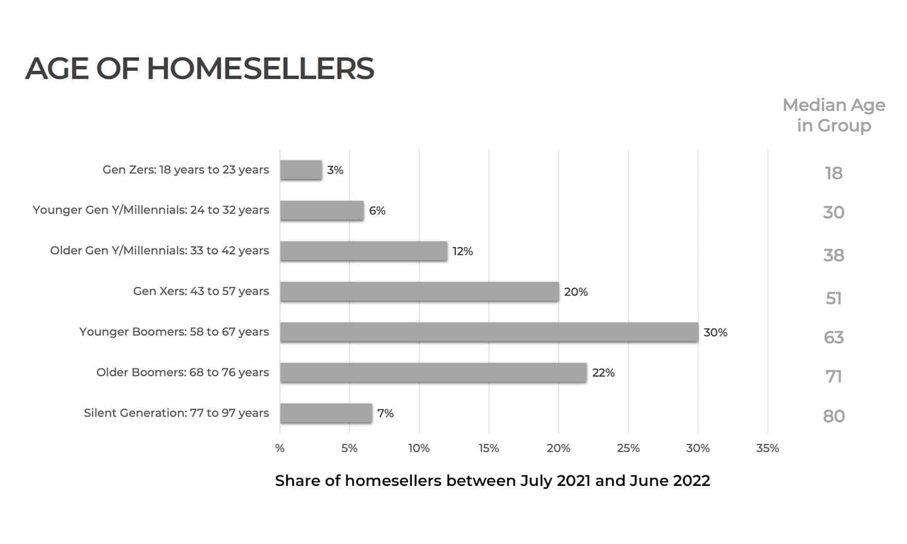 Sellers typically lived in their homes for 10 years before selling with younger millennials staying in their home for less time — a median just four years — compared to a median of 16 years for older baby boomers.