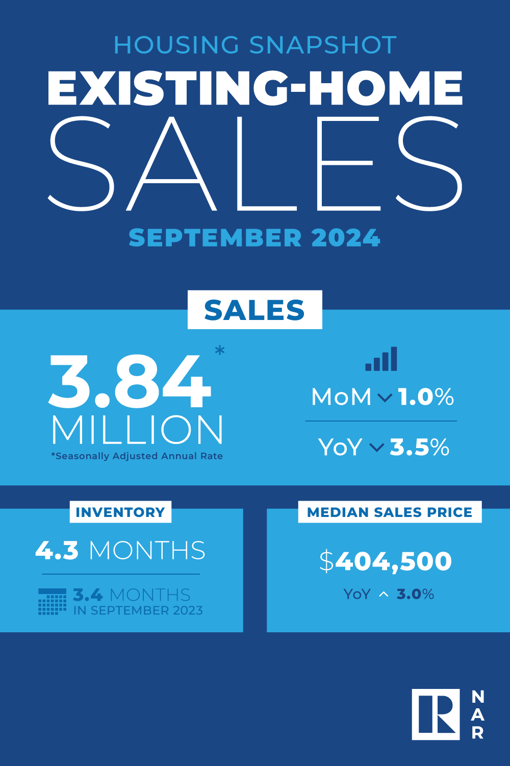 Existing-home sales declined for the second month in a row in September, the National Association of REALTORS® (NAR) said.