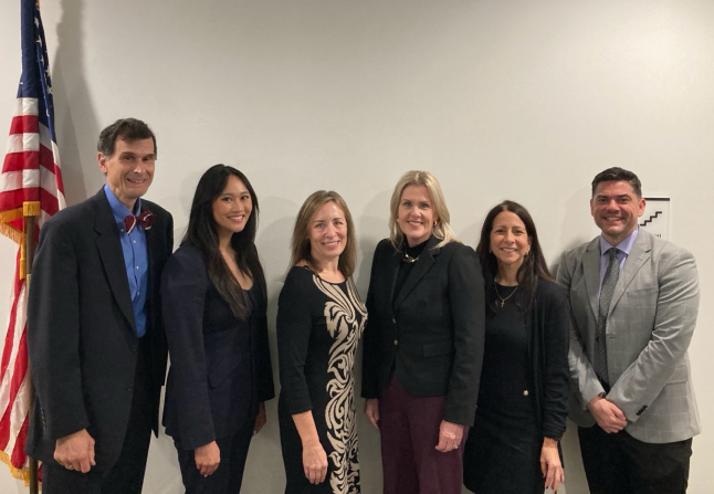 (Left to Right): Greg Vasil, CEO of the Greater Boston Real Estate Board; Nicole Upano, AVP, Housing Policy & Regulatory Affairs, NAA; Dani Bastarache, deputy assistant secretary for public housing and voucher programs; Cecelia Bolognia, president of the Massachusetts Apartment Association; Adrienne Maley, executive vice president of the Greater Boston Real Estate Board; Steve Lucas, chief of staff, Office of Public and Indian Housing. Credit: Greater Boston Real Estate Board