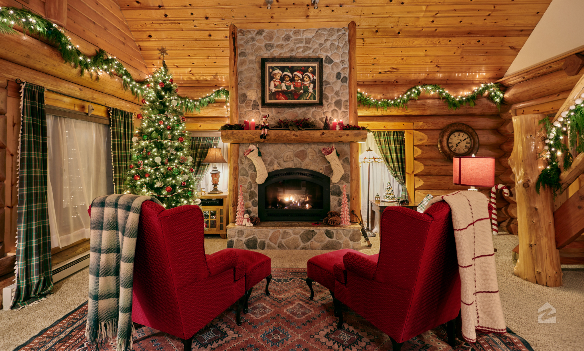 Santa’s North Pole retreat cabin and state-of-the-art toy workshop are housed on 25 acres and were originally built in 1822, with renovations completed in 2013. The property also features stables for the reindeer and a detached garage for Santa’s sleigh.