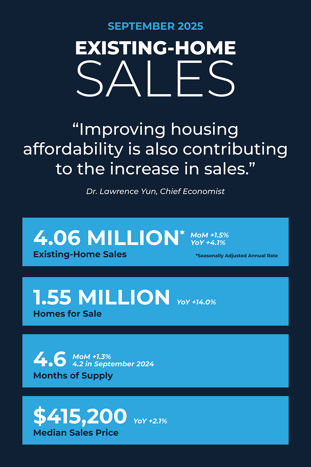 Existing-home sales in the U.S. rose 1.5% month-over-month to a seasonally adjusted annual rate of 4.06 million in September, according to the latest report from the National Association of REALTORS®. Year over year, sales rose 4.1%.