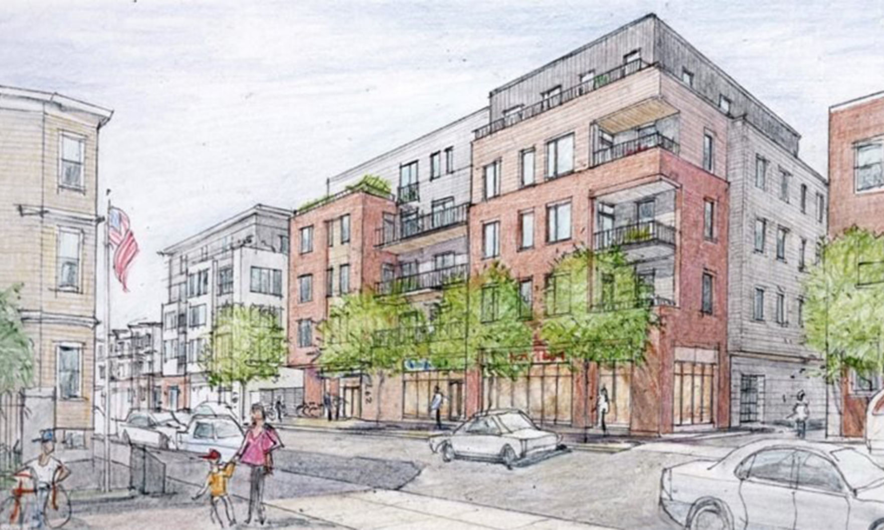 The mixed-use development will include a five-story, 30,524 square-foot building with 26 apartments, four of which will be income-restricted.