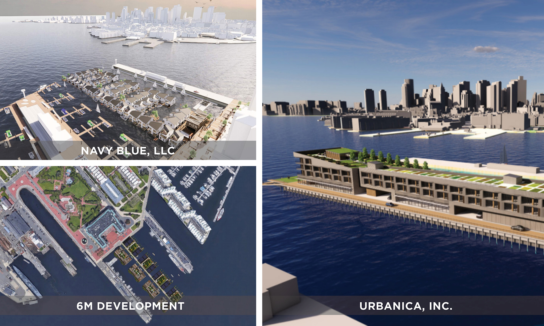 The Boston Planning and Development Agency is reviewing three bids for the redevelopment of Pier 5 in the Charlestown Navy Yard.