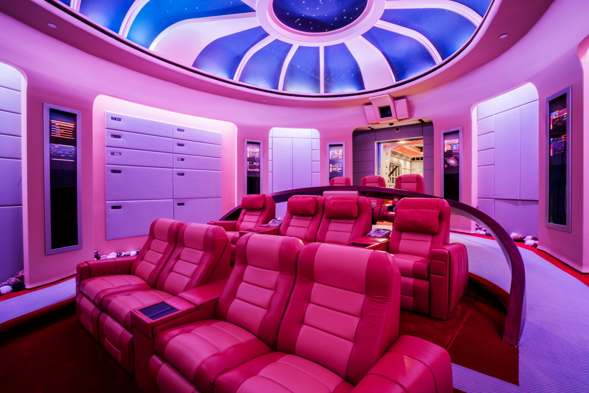 This “Star Trek”-themed movie room is decked out to imitate the bridge of the Starship Enterprise. Beam us up, Scotty.