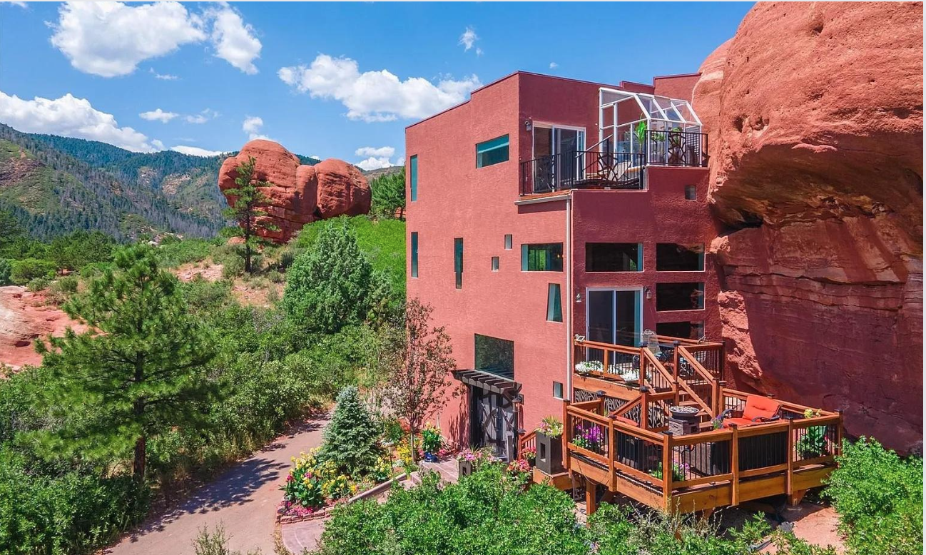 Aptly named The Rock House, this unique home is nestled around a 45-foot-tall section of one of Colorado’s beloved red rocks.