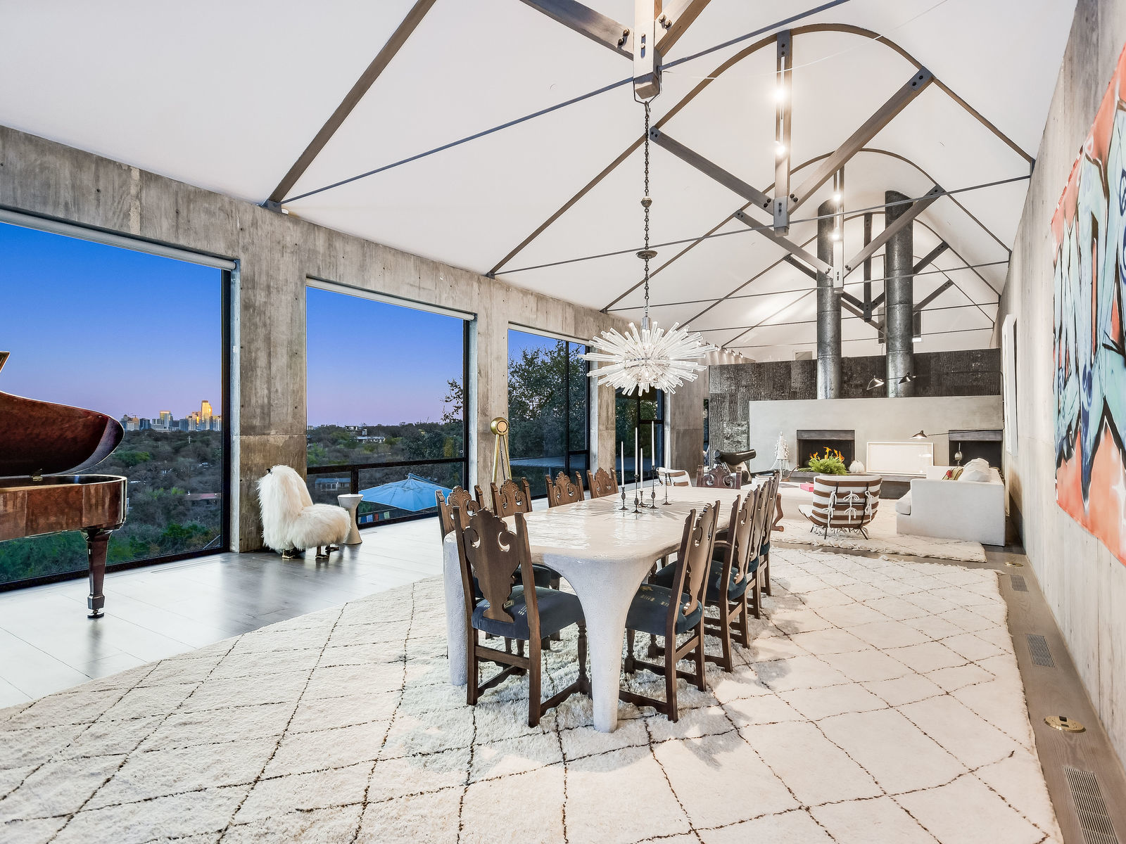 The home will dazzle residents and visitors alike with unique details such as its kitchen wall made of lichen-speckled tree bark and kitchen island topped with white macaubas quartzite.
