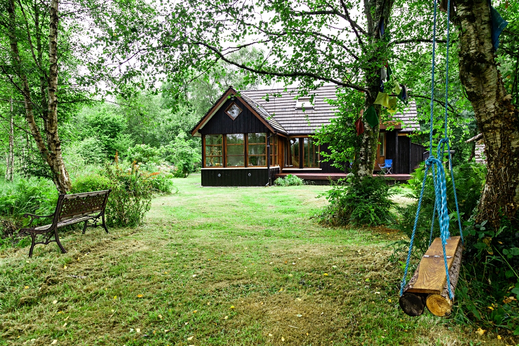 A wood stove heats the structure, and residents rely on a rainwater collection system for even greater self-sufficiency.