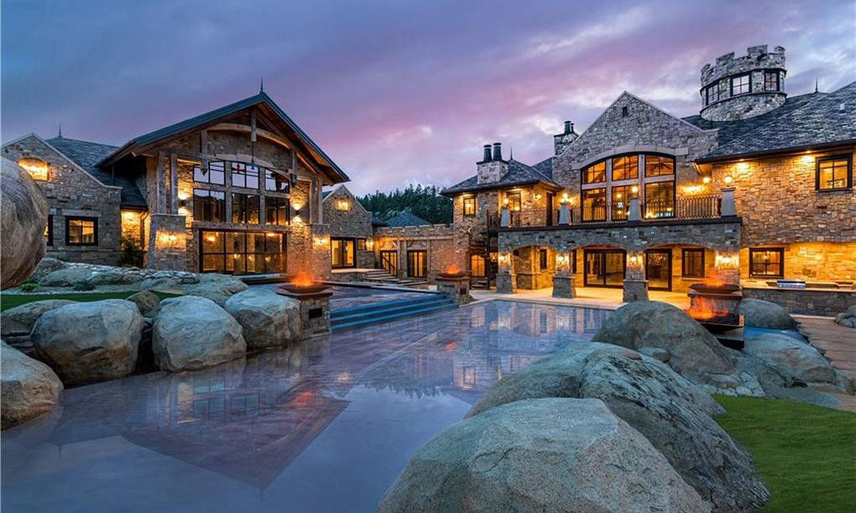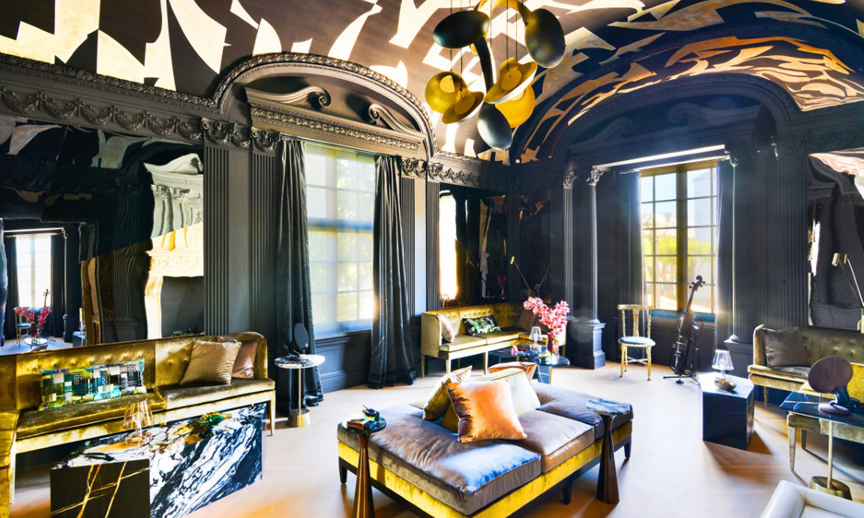 This historic landmark contains a ballroom that’s been turned into a super-chic nightclub. The 9-bedroom, 7.5-bath home, listed at $21.8 million, was inspired by a small château on the grounds of the Palace of Versailles in France.