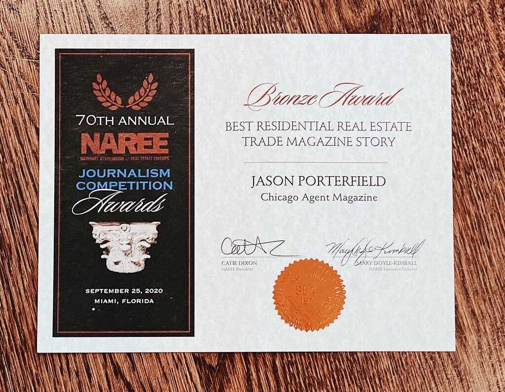 Chicago Agent magazine has received a bronze award for Best Residential Real Estate Trade Magazine Story by the National Association of Real Estate Editors (NAREE). Held virtually on December 9th, the 70th annual Real Estate Journalism Awards competition — open