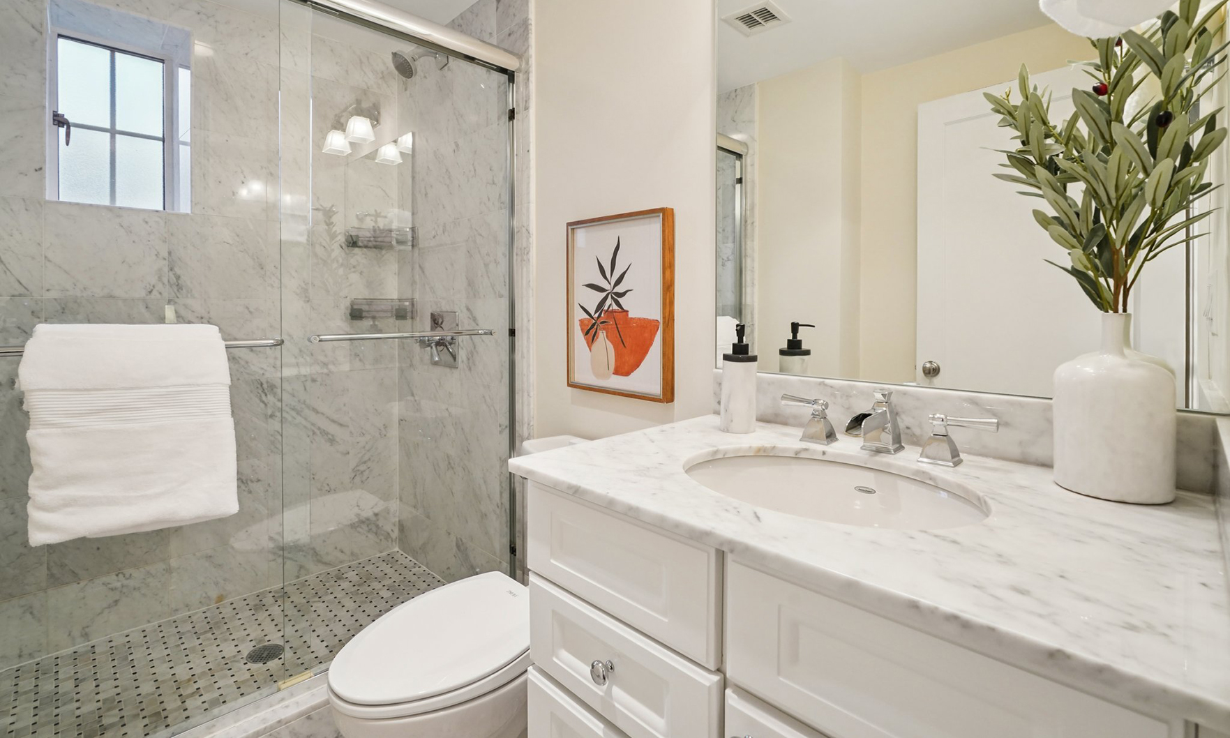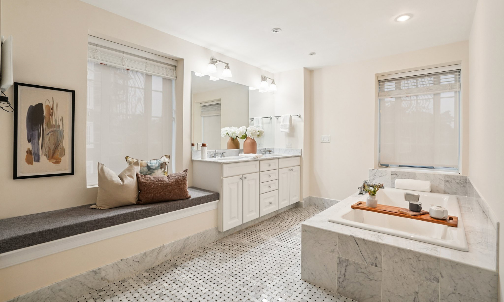 This rare offering includes four generously sized bedrooms and four full bathrooms, highlighted by a luxurious primary suite featuring: